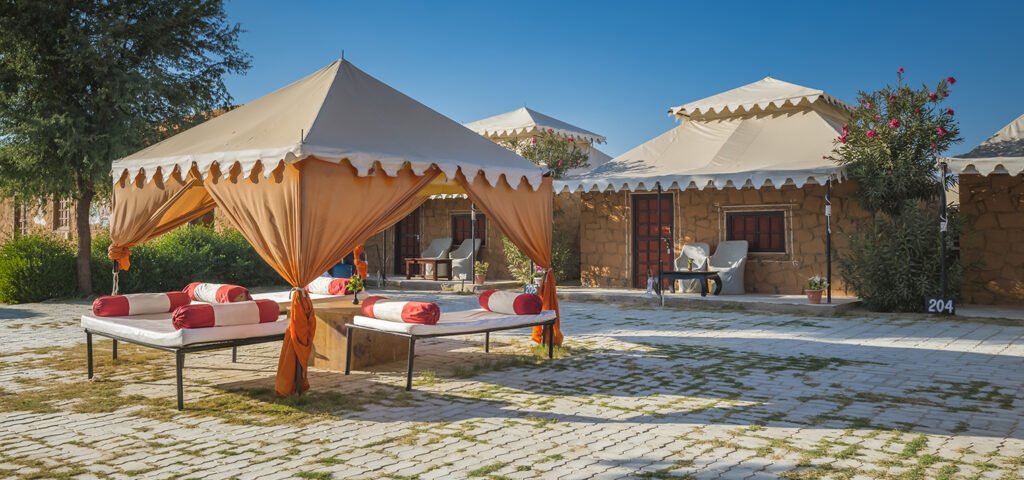 At the end of a day filled with exploration and adventure, returning to a comfortable desert camp is the perfect way to unwind. While rustic at heart, many Jaisalmer desert camps, including Marvin Desert Camp, offer luxurious Swiss tents and modern amenities for a comfortable stay. These tents are equipped with private bathrooms, cozy bedding, and often air conditioning, blending traditional desert living with a touch of comfort and elegance.
